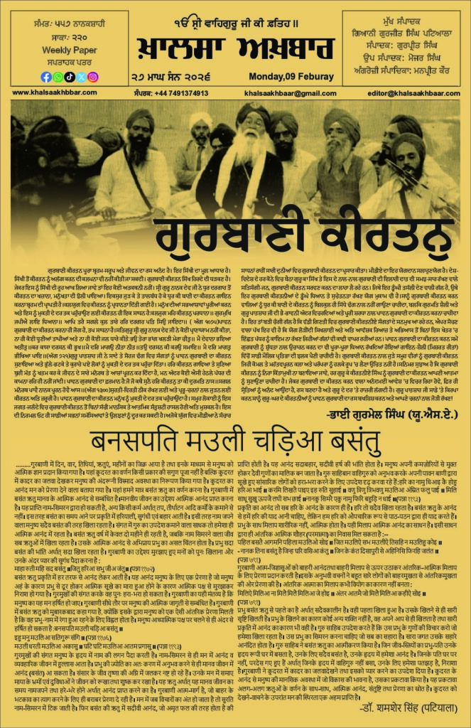 Khalsa Akhbaar Epaper (09 Febuary 2026)