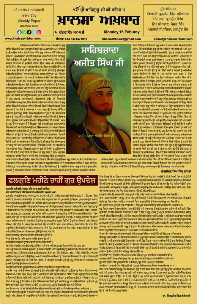 Khalsa Akhbaar Epaper (16 Febuary 2026)