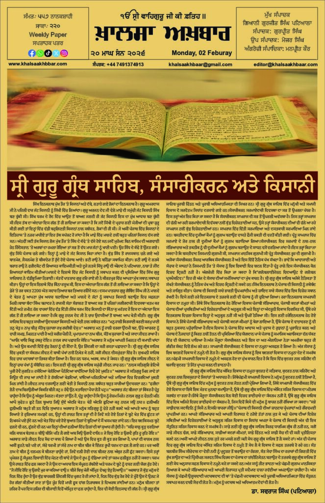 Khalsa Akhbaar Epaper (2 Febuary 2026)