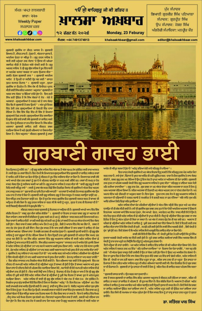 Khalsa Akhbaar Epaper (23 Febuary 2026)